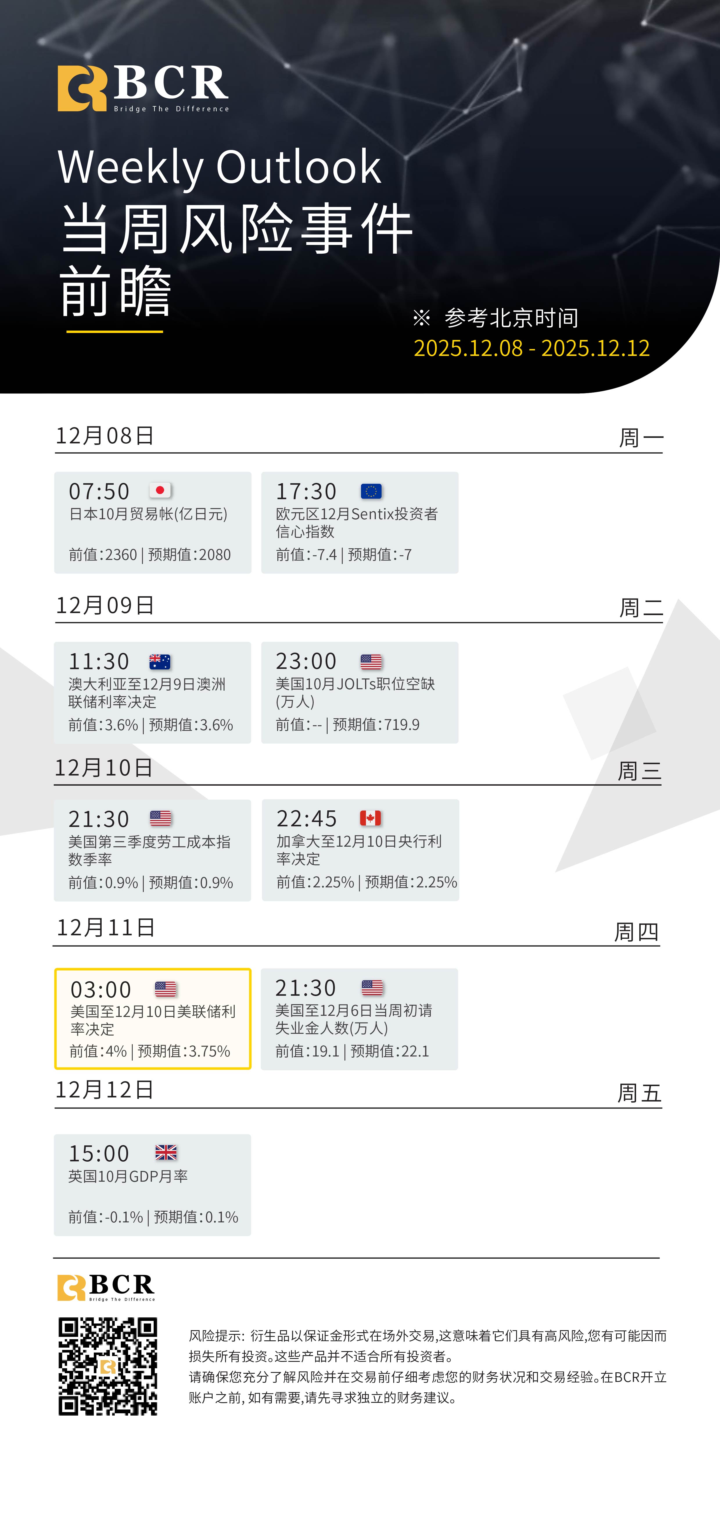 風險披露: 在保證金上交易差價合約具有很高的風險,可能不適合所有投資者。通過交易差價合約,您可能會損失您存入的全部資金。BCR對於我們網站、電子郵件或相關材料中提及的任何金融產品的價值不做任何推薦。我們網站、電子郵件或相關材料中包含的信息不考慮潛在客戶的交易目標、財務狀況或投資需求。在決定交易BCR提供的差價合約之前,請確保您已閱讀我們的 產品披露聲明 ,  金融服務指南 ,  確定目標市場檔 ,並已尋求獨立的專業金融建議,以確保您在交易前充分了解所涉及的風險。