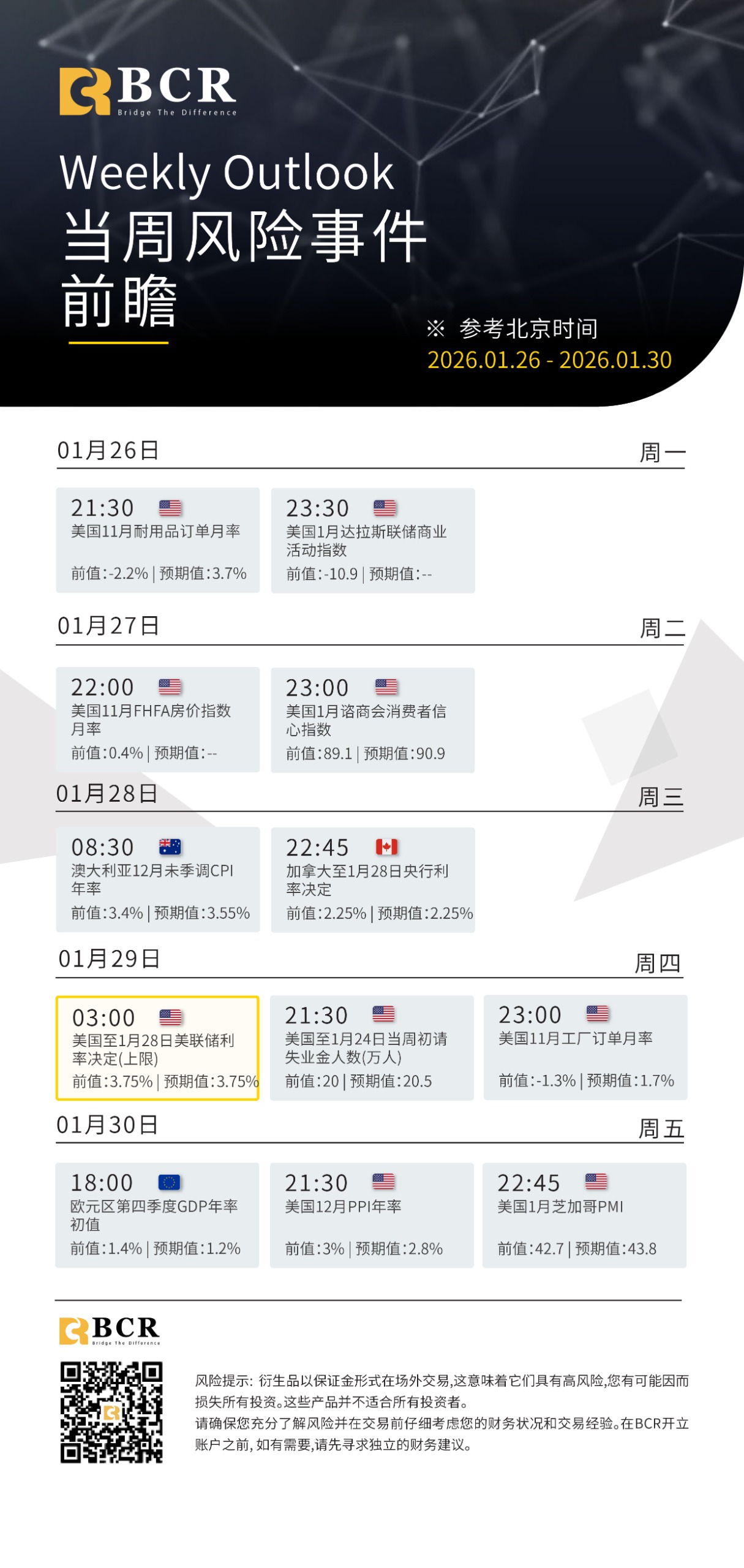 每周风险事件前瞻 : 1 月 26 日—1 月 30 日